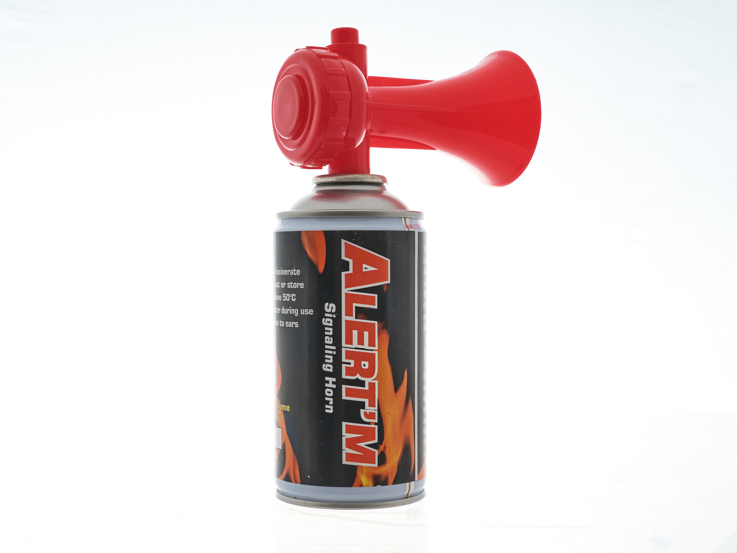 Introducing the powerful and effective ALERT Air Horn Canister - a pneumatic device engineered to emit a deafeningly loud noise, perfect for grabbing attention in emergency situations. This innovative product features a compact canister filled with compressed air, ensuring a reliable and consistent blast of sound when activated. Designed for signaling purposes, this air horn delivers a piercing noise that can be heard from a distance, making it ideal for use in crowded or noisy environments where traditional communication methods may not be effective. Whether you need to alert others in a safety emergency, sporting event, or outdoor activity, the ALERT Air Horn Canister is a must-have tool for ensuring your message is heard loud and clear. The easy-to-use design of this air horn makes it a convenient and practical option for a variety of situations. Simply press down on the canister to release a powerful burst of sound that is sure to cut through any noise and grab attention. Don't settle for less when it comes to safety and communication - invest in the ALERT Air Horn Canister today.