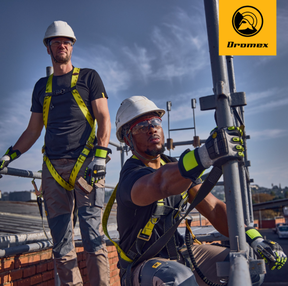 The Dromex® DFA-PN10-PS full body harness, is an essential and mandatory piece of safety equipment when working at heights as it protects a user from accidents and injury resulting from a fall. Features: • High visibility webbing. • Light weight construction. • One dorsal attachment D-ring for fall arrest. • The choice of attaching either an energy absorbing lanyard with scaffold hooks or a retractable lanyard as a fall arrest system. • Adjustable chest and leg straps. • Ideally positioned sit strap for extended comfort. • 2 Webbed Lanyard Keeper loops on chest strap for holding lanyard hooks for placement of free lanyards. • An ID (impact distribution) plate to absorb load and is a visual indicator confirming that the harness has been exposed to a fall or impact forces and should be removed from service. • A universal fit. This harness has a maximum rated load of 140Kg. Suitable for use when working at heights in the construction (scaffolding, high rope access), ship building, mining, warehousing and general maintenance industries (window cleaning, painting).