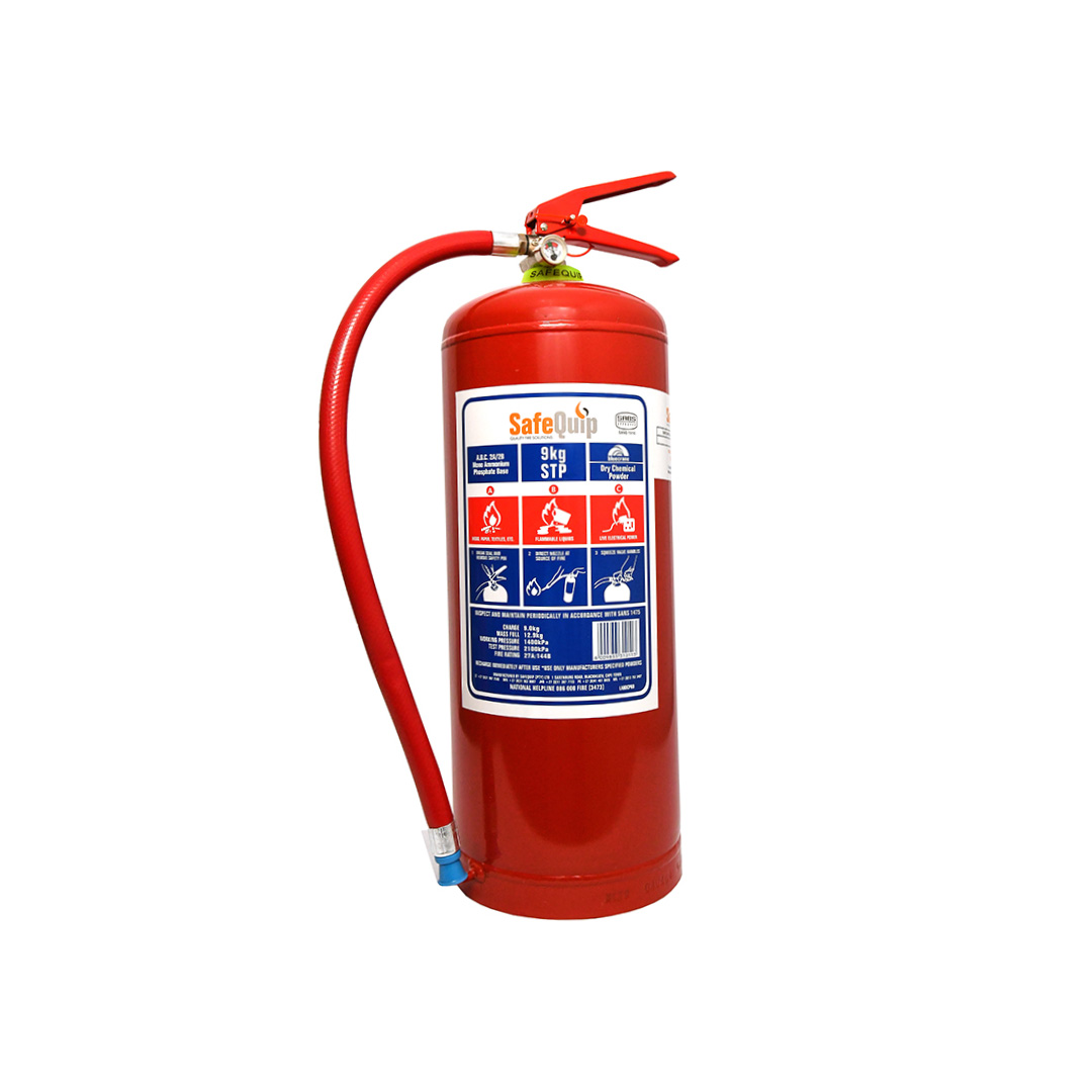 The Safequip DCP 9kg Fire Extinguisher is a versatile and dependable fire safety solution for a wide range of fire hazards. This stored pressure dry chemical powder extinguisher is suitable for combating class A, B, and C fires, making it ideal for mixed fire risk environments. It conforms to the minimum fire ratings specified in SANS 1910:2009 and is highly effective for electrical hazards. Developed over three decades, this extinguisher uses a specially formulated dry chemical powder that interferes with the combustion process for rapid fire knock down. The powder is siliconised for superior flow and anti-caking, ensuring reliable performance when needed most. Constructed with a durable brass operating head, steel epoxy coated carrying handle, and discharge lever, this fire extinguisher features a safety relief valve and pressure gauge for easy monitoring. The larger size of 9kg comes with a high pressure discharge hose and nozzle for added convenience during use. Suitable for use in industry, garages, workshops, and more, the Safequip DCP 9kg Fire Extinguisher is a trusted choice for effective fire protection.