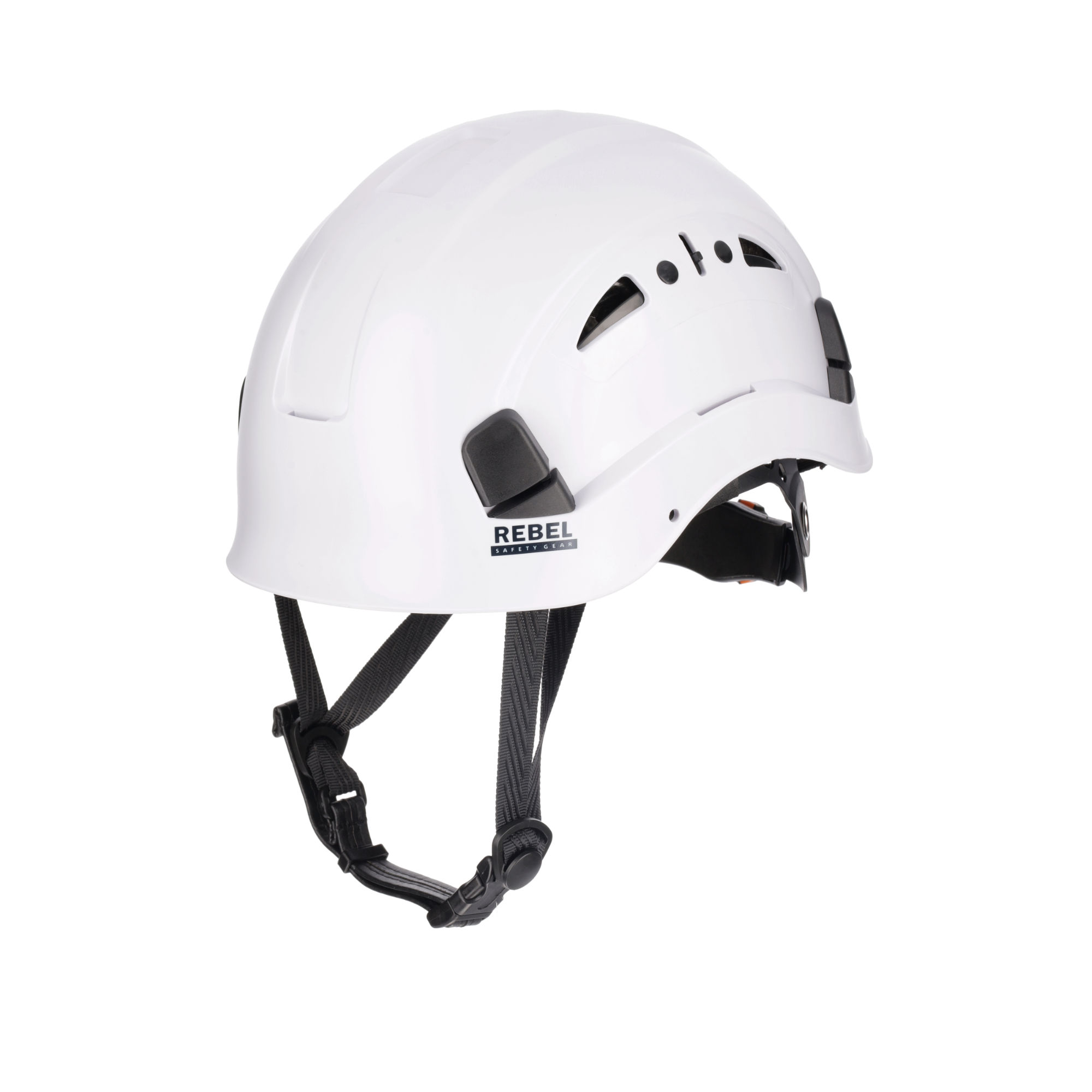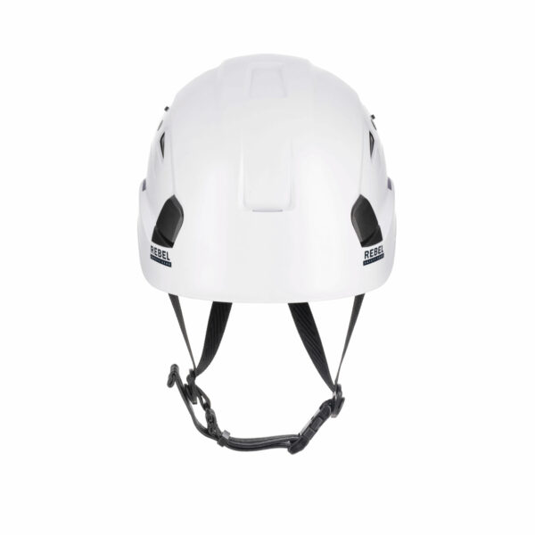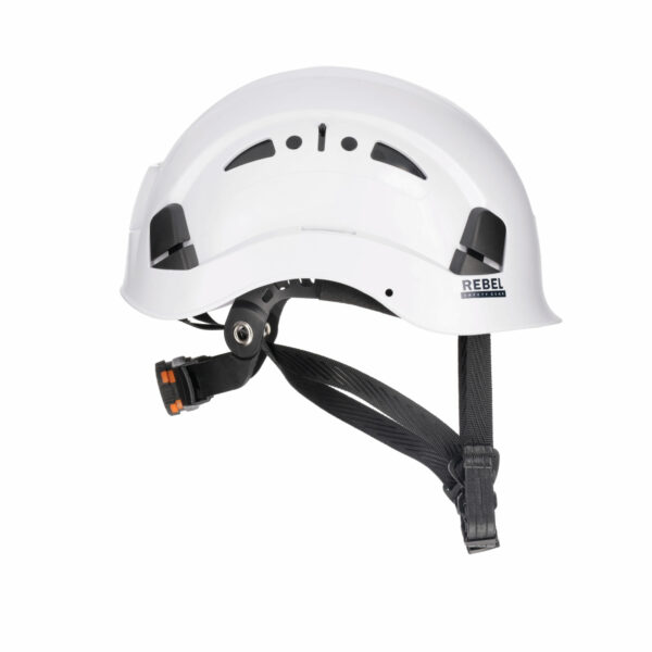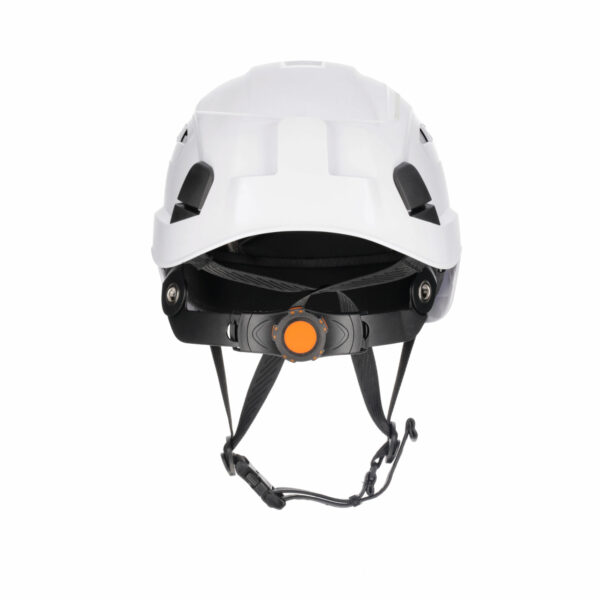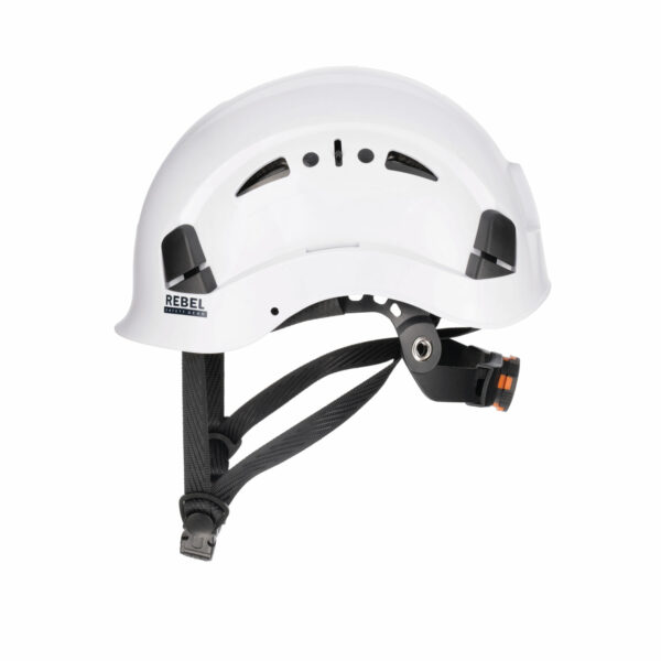 MATERIALS + DESIGN • Outer shell made with acrylonitrile butadiene styrene (ABS) & polycarbonate (PC). • High protective shell exterior. • Wide aeration holes with covers to prevent debris entry. • Inside protection in high-density polystyrene which aids with impact resistance protection. • Inner textile and headband, removable and washable. • Polyester webbing chin strap which includes a polypropylene chin cup. TECHNICAL FEATURES • Protection from falling objects. • Helmet supplied with an adjustable 3-point chin strap. • Wheel ratchet provides quick & easy size adjustment. • Contoured webbing for comfortable fit. • Has a reduced peak for better field of vision.