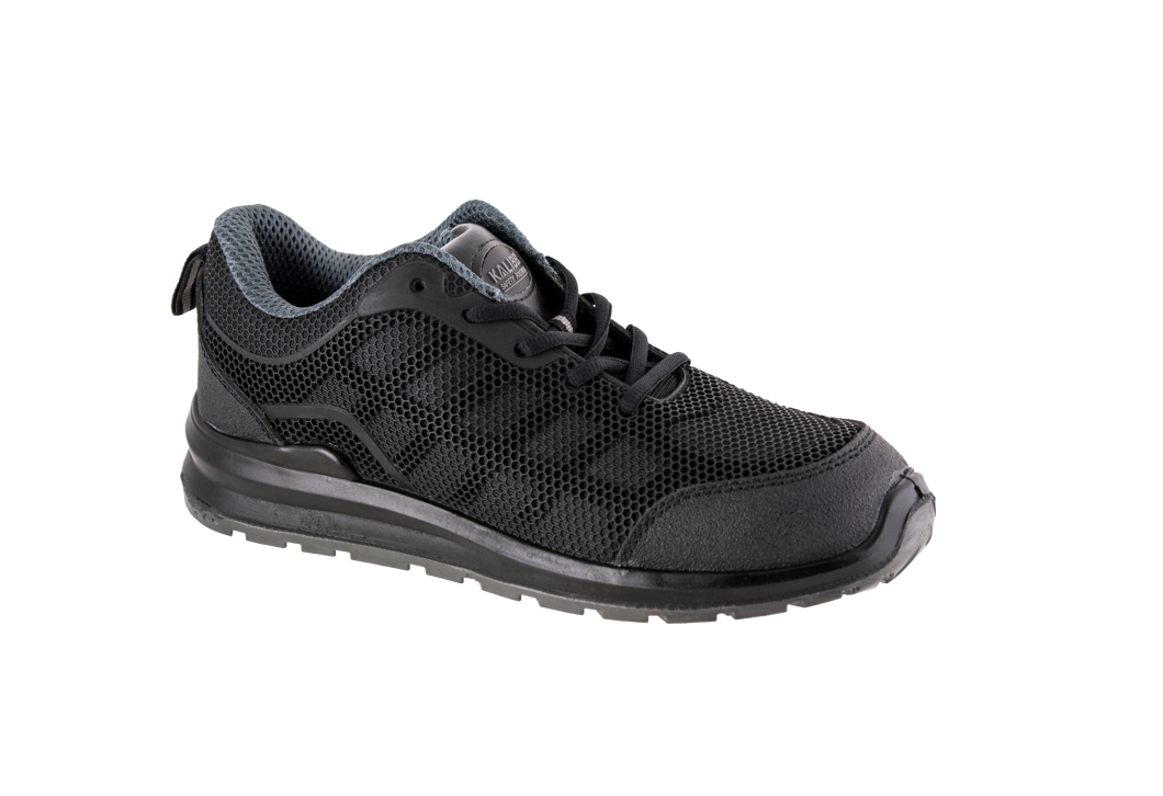 The "Safety Shoe Kaliber Velocity" boasts a mesh upper that is not only lightweight but also allows for breathability, ensuring that your feet stay comfortable and cool throughout the day. With a steel toe cap that can withstand an impact of up to 200 Joules, this safety shoe offers excellent protection for your toes. Furthermore, the shoe features a shock absorbent sole unit made from dual density polyurethane, which helps reduce the impact on your feet when walking or standing for extended periods. The outsole is also oil resistant, making it ideal for work environments where spills may occur, providing you with maximum grip and stability on slippery surfaces. To enhance safety, the outsole is designed to be anti-slip, preventing accidental slips and falls, even on surfaces with moisture or debris. Additionally, the shoe is anti-static, meaning it helps to dissipate any static electricity that may build up during work, reducing the risk of static shocks and potential damage to sensitive equipment. In summary, the "Safety Shoe Kaliber Velocity" is a top-of-the-line safety shoe that prioritizes comfort, protection, and functionality. Its breathable mesh upper, steel toe cap, shock absorbent sole, oil-resistant outsole, anti-slip feature, and anti-static properties make it the perfect choice for workers seeking reliable footwear that keeps them safe and secure in various work environments.